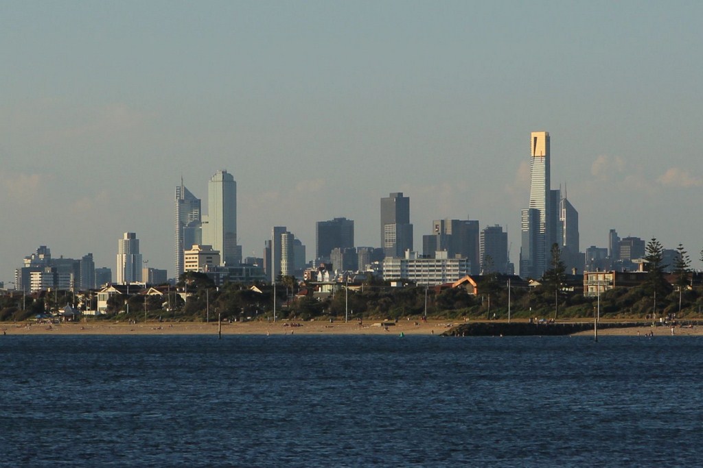 Am Abend zeigt mir meine Gastmutter den Strand und ich kann das erste Mal die Skyline von Melbourne fotografieren: