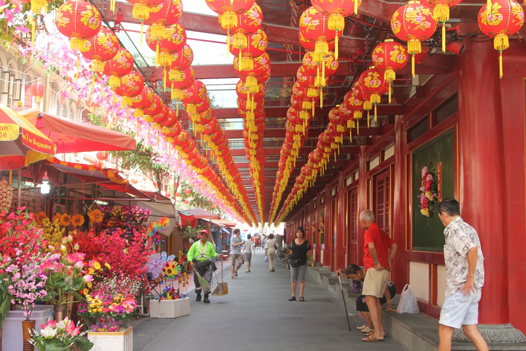 Unsere letzte Station ist die Chinatown, und da es nur noch wenige Tage bis zum chinesischen Neujahr sind, ist alles knallrot geschmückt. Hier wird mir auch richtig bewusst, dass Singapur ein echter Multi-Kulti-Staat ist. Auf engstem Raum leben hunderte Ethnien und allerhand Religionen zusammen. Kirche, Moschee, Hindu- und Budda-Tempel in Sichtweite voneinander? Hier keine Seltenheit.