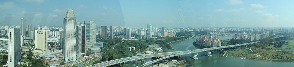 Landeanflug auf Singapur, früher Morgen Ortszeit. Die Sonne ist erst vor einer halben Stunde aufgegangen, über der Stadt liegt (immer noch?) ein bisschen Dunst. Ich fliege einer schier unglaublichen Zahl von Hochhäusern entgegen; so weit das Auge reicht wachsen Gebäude gen Himmel. Manche sind repräsentativ schick, manche einfach nur zweckmäßig hässlich…