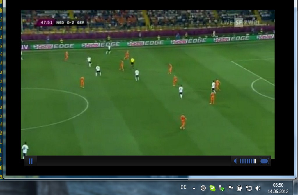 Anpfiff war um 04:45 meiner Zeit - dieses Bild mit 05:50 auf der Windows-Uhr entstand circa eine Stunde später kurz nach Beginn der zweiten Hälfte...