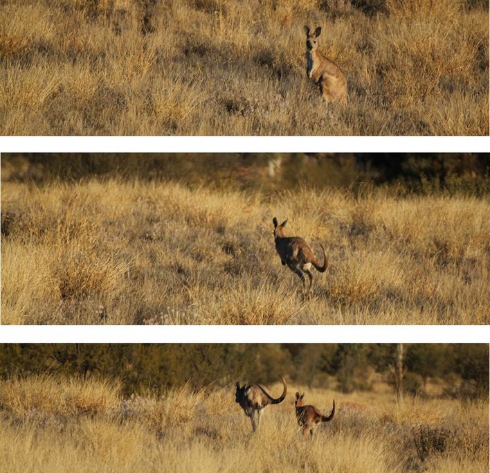 Ich bleibe stehen – es sind zwei Kängurus! Die ersten, die ich während meiner gesamten Zeit in Australien in komplett freier Wildbahn sehe. Und das nur zwanzig Meter von mir entfernt!