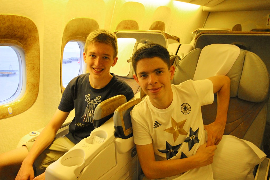 19:04 Verheißungsvolle Ansage der Eincheck-Tante: “Sie haben heute Business-Plätze, aber trotzdem nur Economy-Service.” Scheiß auf Service, deluxe Schlafplätze FTW!